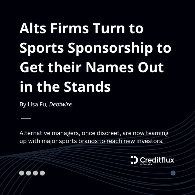 Alternative investment firms like @BlueOwlCapital and @apolloglobal are raising their profile to draw retail investors, and sports are a direct conduit to growing market share. Read Debtwire reporter Lisa Fu's article about their move into sports sponsorships: